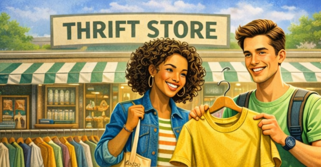 Nothing beats the thrill of discovery. Thrifting and second-hand shopping let you build style like a treasure hunter. In the USA, thrift stores, vintage shops, and online marketplaces offer everything from varsity jackets to classic Levi’s. You reduce waste each time you buy pre-loved pieces. You also cut down production pressure, which helps reduce waste in fashion, making this one of the easiest sustainable fashion trends for college students to follow.